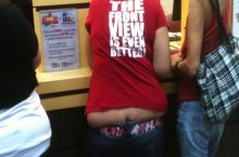 He may bench 450, but he has lost his belly button.