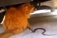 cat wearing shark costume rides roomba while duck takes a dump.