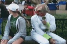 is that a guy wearing a skirt next to her?