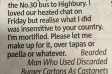 You can find some gems in English newspaper missed connections.