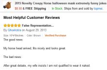 The most helpful customer review for horse head mask...