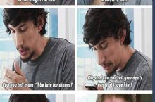 Exact photo description of a dad joke in action