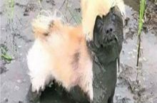 This muddy dog looks like a spooky mud dog wearing another dogs skin as a disguise.