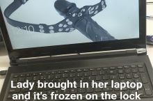 This lady brought in her laptop to get repaired today. The laptop was frozen on the lock screen. Absolute gold!