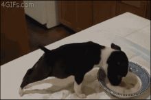 Puppy heavy head eating