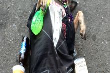 A homeless guy on Bourbon Street trained his dog to play "passed out". I paid a buck for this photo.