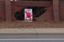 Car drove this through brick fence, neighbor put this out