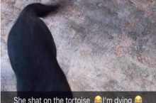 Dog poops on tortoise