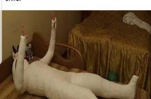 This kangaroo drinking out of a pool looks like a headless naked man with a kangaroo head on his butt.