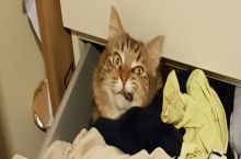 Angry drunk pirate cat hiding in my daughter's drawer