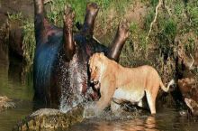 Just your average lion trying to shove a crocdiles head into a hippos butt