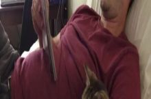 My upstairs neighbor getting ready for work