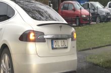 The vanity plate of this Tesla