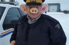 This cop dressed up as a pig for Halloween.