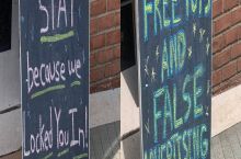 The signs outside this toy store