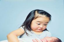 This girls reaction when holding her younger sister! Priceless!