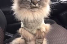 My girlfriend’s cat looks like she’s been working the drive-thru window for too long