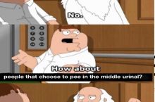 The middle urinal is forbidden for use, especially if there are only three