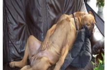 My dog’s victory smile after beating me at tug-of-war with my bra. He’s very proud of himself.