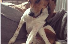 My dog waking up from a nap still riding his pain meds...