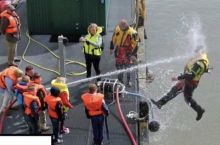 Kids playing with water hose during Coast Guard demonstration
