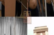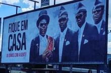 it says: "Stay inside or you gonna dance with us"