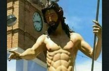 This statue looks like it didn't consent to being cleaned by three strangers