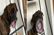 Penny showing off her empty yoghurt container - and no it wasn't stuck