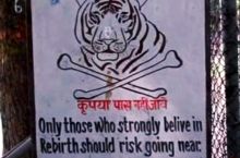 Caution sign from a Indian tiger reserve.