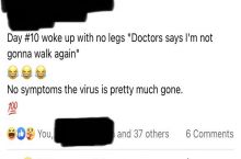 My amputee friend, who caught covid and has been quarantined has a funny sense of humor.