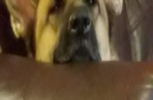 I asked my dog how he was doing from the other side of our family room. He looks back at me like this