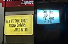 We all get a kick out of these two businesses in town making jokes on their signs