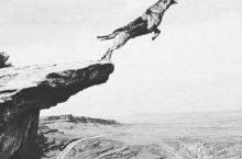 Photo that became inspiration for Warner Bros. "Road Runner and Wile E. Coyote" Looney Tunes cartoons of a coyote leaping to his death to catch a roadrunner