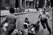 Police officer deciding which child to kill during children's game