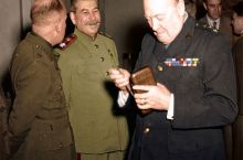 Churchill is trying to remember which of the cigars is poisoned in order to give it to Stalin. 1945.