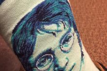 You decide: are these socks supposed to be John Lennon, or Harry Potter?