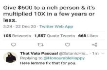 Didn’t have any small bills for the tip.