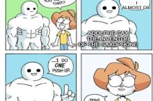 all the time travelers are trying to stop him from inventing the saxophone