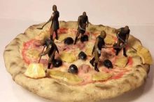 Heroic Italian volunteers removing the pineapple slices from a contaminated pizza 1877, colorized