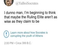 Socrates banned from Twitter circa. 399 BC