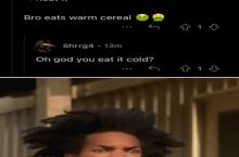 Do y’all actually be out here eating warm cereal?! Milk first?!