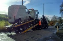 A recovery truck recovering a recovery truck on a recovery.