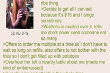 Waitress just trying to get a nice tip from the guy and he suddenly thinks stuff...