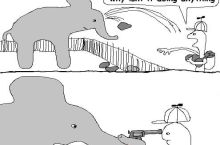 "Look at what the elephant did to the poor unarmed boy, he had the hat of f...